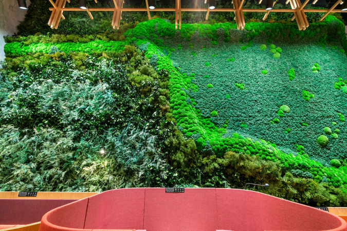 Preserved green wall, 50% foliage and 50% mix of moss