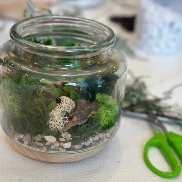 Create your own eco-friendly terrarium with preserved moss. Easy, guided, and fun for everyone!